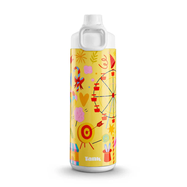 زجاجة سوبر كول ميني مطبوعة 650 مم عازلة للحرارة مصممة لحفظ برودة المشروبات لفترة تصل إلى 3 ساعات مع التركيز على التصميم العملي والمتين الذي يناسب الاستخدام اليومي أو أثناء التنقل، ومتوفر منها مطبوعات على شكل سيركس وبارك وجيمز.